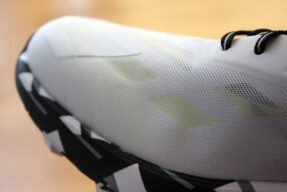 Als ich in den Schuh reinschlüpfte, fühlte ich mich sofort wohl. Adidas ist ja normalerweise etwas schmal geschnitten. Doch beim Speed Ultra geht es eigentlich. Im Vorfuß hat man ausreichend Platz, aber dennoch einen guten Halt. Das Obermaterial ist sehr dünn und passt sich dem Fuß gut an. Auch die Zunge ist minimal, aber dennoch ausreichend gepolstert und hat eine perfekte Länge. Sie ist zudem an der Zwischensohle fixiert und kann nicht verrutschen. Eine Schnürsenkeltasche gibt es leider nicht, aber die Schnürsenkel sind nicht zu lang und eine Tasche vermisse ich nicht wirklich. Mein Fuß sitzt richtig gut im Schuh. Insgesamt fällt er vielleicht minimal kleiner aus, als andere Adidas-Schuhe in der Größe. Dafür wird er aber sogar in US 14 angeboten, was bei vielen anderen Adidas-Modellen leider nicht mehr der Fall ist.